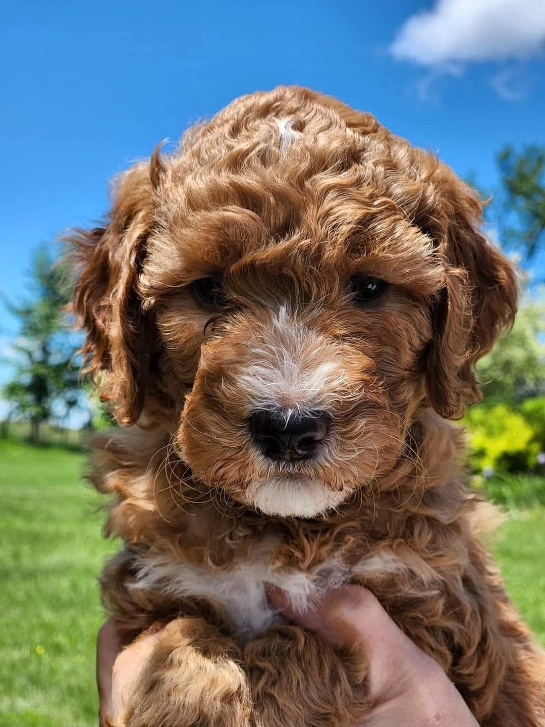 Briar-Rose, our stunning red Goldendoodle, is a true beauty with her vibrant, rich coat and sweet, affectionate personality. Her playful energy and loving nature make her a joy to be around! Whether she’s bouncing through the yard or snuggling by your side. With her curious spirit and warm heart, Briar-Rose brings happiness to everyone she meets. Her unique charm has made her a treasured member of our family.