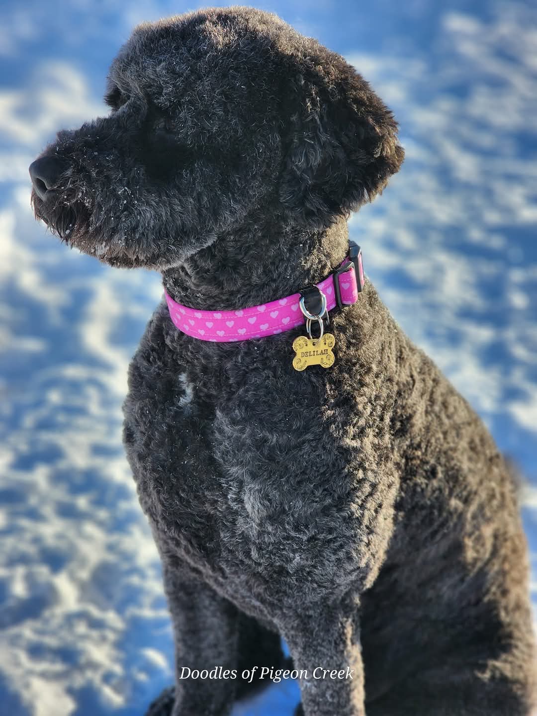 Delilah is where it all began at Doodles of Pigeon Creek! As the original mama of our Goldendoodle program, Delilah embodies the best traits of both the Golden Retriever and the Poodle. She’s incredibly intelligent, with just the right amount of playful independence. Delilah’s loving nature shines through in every interaction—she adores people and animals alike, making her an instant favourite among visitors. Everyone who meets her or her litters falls head over heels in love.