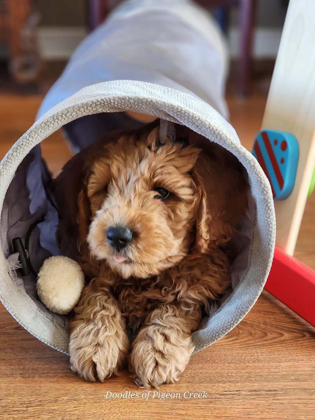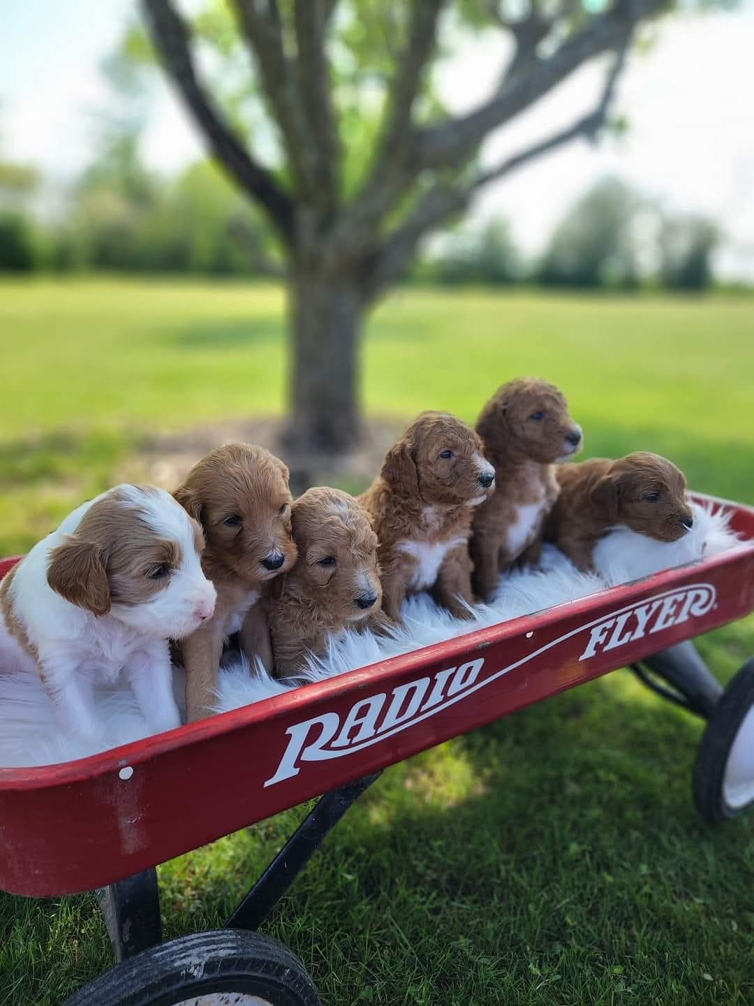 Step into our delightful gallery, where the charming world of Goldendoodles comes to life! Known for their friendly nature and hypoallergenic coats, Goldendoodles are a wonderful mix of Golden Retrievers and Poodles. In our gallery, we celebrate the unique personalities, playful antics, and irresistible cuteness of our lovable Doodles of Pigeon Creek Goldendoodles.