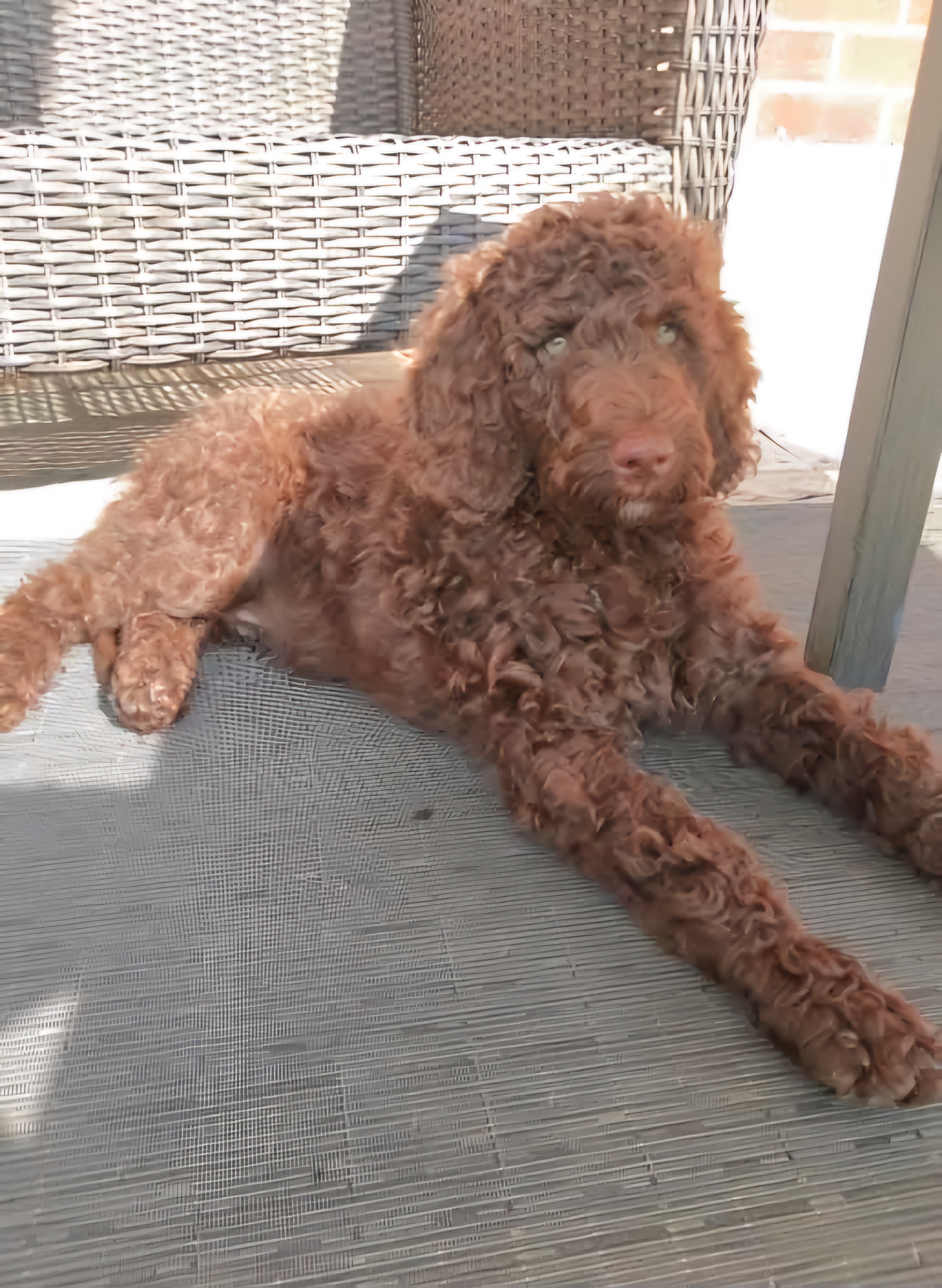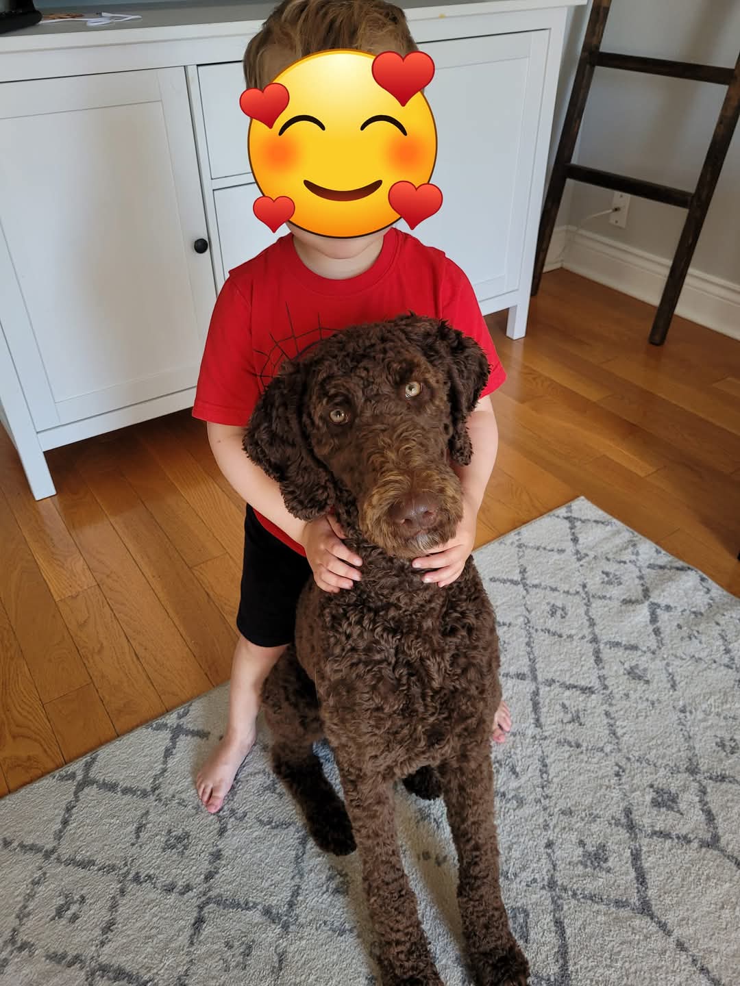 Riggs is a lively and playful chocolate Goldendoodle with a heart full of joy. His rich, curly brown coat perfectly complements his warm and affectionate personality, making him an adored companion. Living with three energetic little boys, Riggs is the ultimate partner in mischief—always ready for a game of fetch, backyard adventures, or cozy cuddles after a day of fun. His infectious energy and enthusiasm bring endless laughter and happiness to his family.