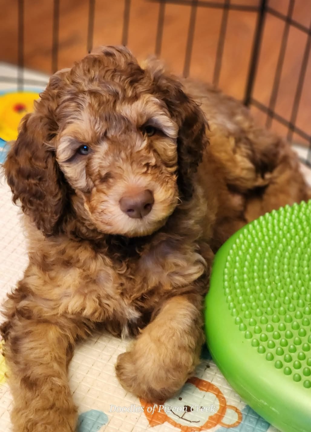Riggs isn’t just a dog; he’s a cherished member of the family who brightens every moment with his gentle nature and unconditional love. As part of our breeding program here at Doodles of Pigeon Creek, Riggs has sired one exceptional litter with Wanda. Together, they produced puppies with stunning looks and incredible temperaments, reflecting the best traits of their parents.