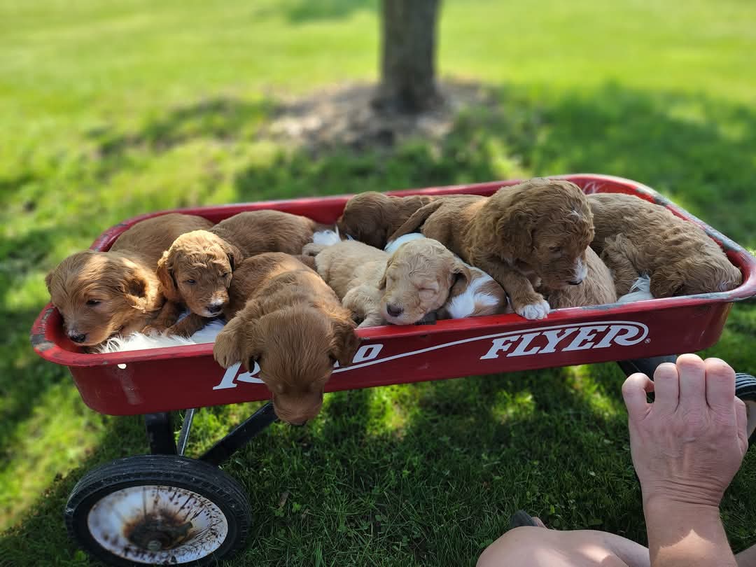 “Words cannot express the exceptional experience we had with Regan and her program at Doodles of Pigeon Creek. From the moment we brought Nugget home, it was clear that he had been lovingly raised in a nurturing and enriching environment. Regan’s transparency and dedication to responsible breeding were evident in every aspect of our interaction. Nugget has been an absolute delight since day one, sleeping soundly in his crate and impressing us daily with his intelligence and personality.