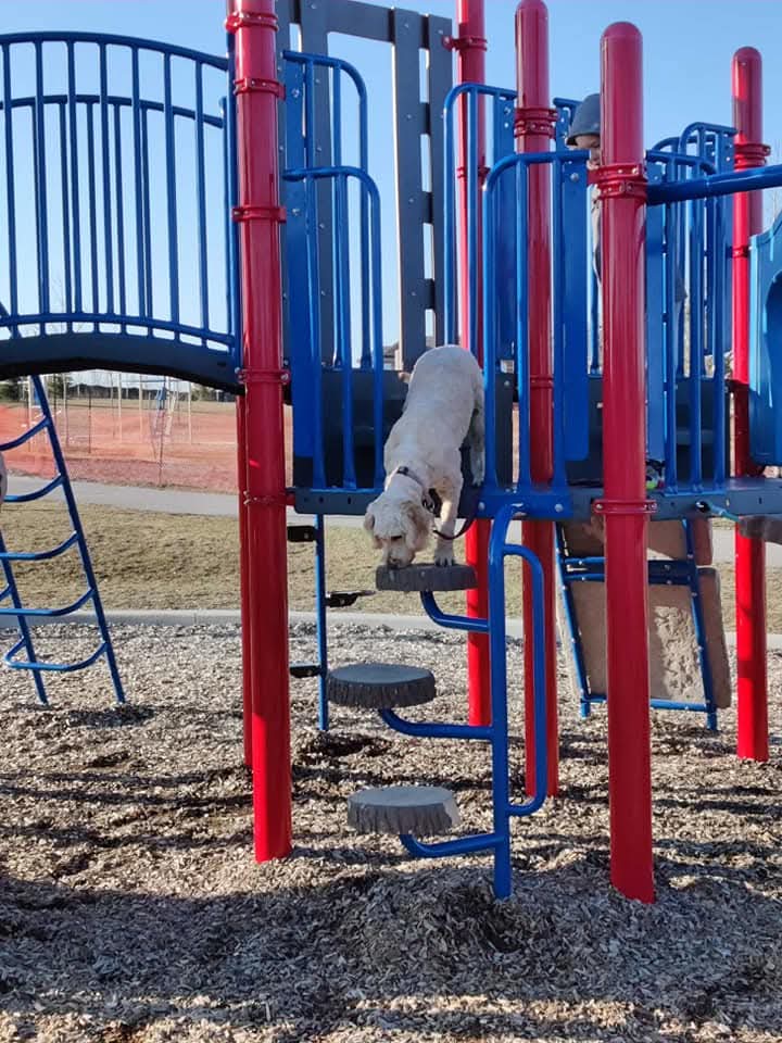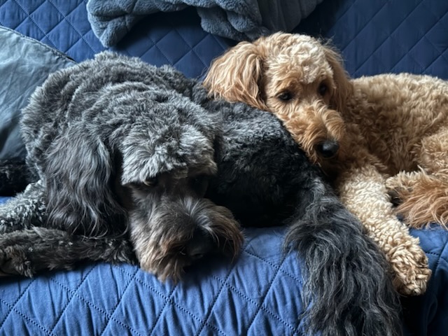 “We just love our girl from Doodles of Pigeon Creek! She is super sweet, and highly intelligent. She is always ready to greet every dog or person that crosses her path with a cute little bum wiggles. The care and attention she received as a puppy shines. I believe it’s what contributes to her ability to be anyone’s best friend. Thank you Regan for our Aspen “