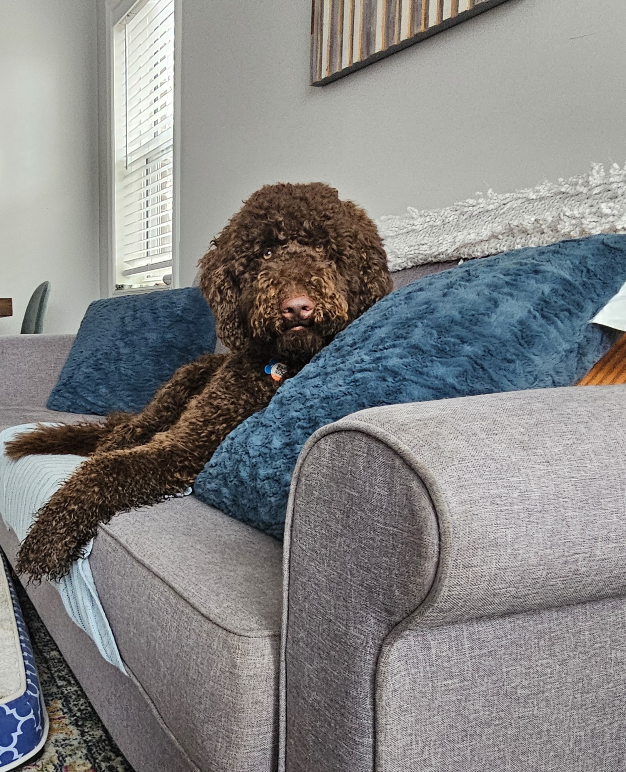 “We’d been looking to adopt a dog for quite some time as our family dog had passed away leaving quite gap in our household Our search became more difficult as our son developed an allergy to dogs and we were finding it hard to find a breed that didn’t illicit an allergic reaction. Fortunately for us Teebow was being rehomed due to circumstances outside of his control at 5 months old (his current family had a child who was very unwell). When I found out, I reached out to Regan to inquire about the adoption process. Regan worked with Teebow’s previous family and screened five families ensuring that Teebow’s safety, security and transition to his new family were top priority. She allowed my family to spend the morning with Teebow as she knew our son had allergies to see how our family interacted with Teebow and if our son had any allergic reactions to him; she then allowed time for Teebow to meet the remaining families. When we met Regan at her home you could instantly feel the love she exudes for her puppies. She let us met Teebow’s Mom, Delilah as well! All that to say, the experience was amazing and there is no doubt in my mind that Doodles of Pigeon Creek has an ethical breeding program that produces well socialized, loveable dogs (Teebow is living proof)! He handles vet visits like a champ, is great with kids and adults alike and is so trainable; what more could you ask for? Regan is so passionate about her breeding program which was 100% evident in how she handled all of my questions and how involved she is after the adoption process is complete. She screens adoptive families to ensure the right fit for her puppies, is compassionate and ethical. We are so blessed to have Teebow as part of our family and its all because of Regan. 100% recommend Doodles of Pigeon Creek if you’re looking to adopt a well socialized, loveable, intelligent and personable Goldendoodle!”